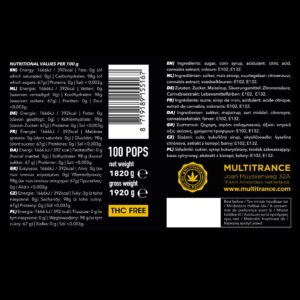 Enjoy Multitrance Cannabis Handmade Pops Display of 100 lollies, crafted with premium hemp seed oil. These THC-free lollipops are legal, flavorful, and ideal for any moment.